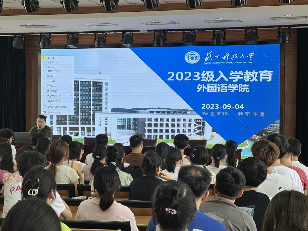 为帮助新生更快融入新集体、适应新身份、明确新目标,2023年9月4日上午9:00,苏州科技大学外国语学院副院长(主持工作)綦亮在C2五楼多功能厅为新生们带来了“开学第一课”入学教育。