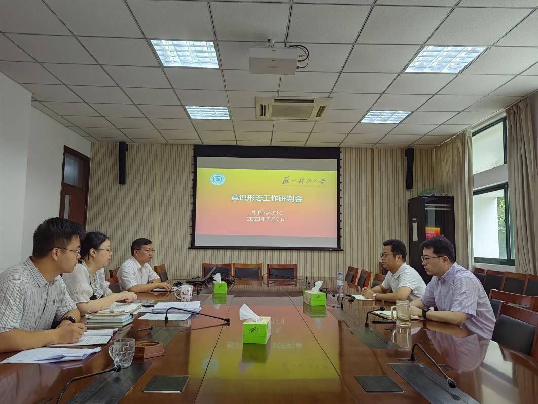 为进一步加强和改进意识形态工作,切实履行把好方向、管好导向的责任,维护意识形态安全,7月7日,外国语学院召开意识形态工作研判会。学院党委书记姚之彦主持,院领导班子成员参加。