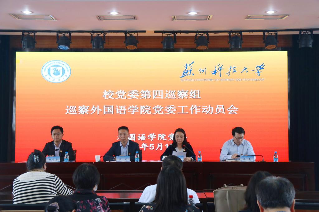 根据校党委第一轮巡察工作的统一部署,5月17日下午,校党委第四巡察组巡察外国语学院党委工作动员会在C2五楼报告厅召开。第四巡察组组长温波、组员徐瑾、顾银君、范亚男出席会议,外国语学院全体教职工参加动员会。