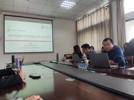 5月8日下午,我院在C2-408会议室举行了“学科英语研究生毕业论文写作方法与策略”讲座,主讲人是苏州大学外国语学院副教授、苏州大学外语教育与教师发展研究所所长古海波。本次讲座由范丽娟教授主持,我校兼职导师杨宇学、院长助理郭雯,21、22级英语教育硕士参加了此次讲座。