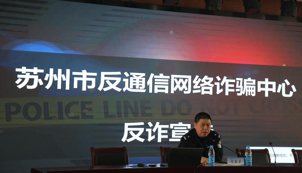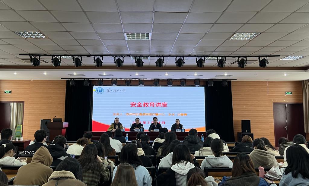 为更好的落实学校安全教育的要求,提高师生安全教育水平,迎接4月15日第八个全民国家安全教育日的到来,3月24日下午外国语学院邀请苏州市公安局反通信网络诈骗中心队长闪春勇警官作安全主题教育讲座。活动并得到了中国银行苏州新区支行的大力支持,新区支行个金部总经理蒋婧女士等也亲临现场,活动由学院党委书记姚之彦主持,党委副书记兼副院长周茹、全体辅导员以及大三学生参加了此次活动。