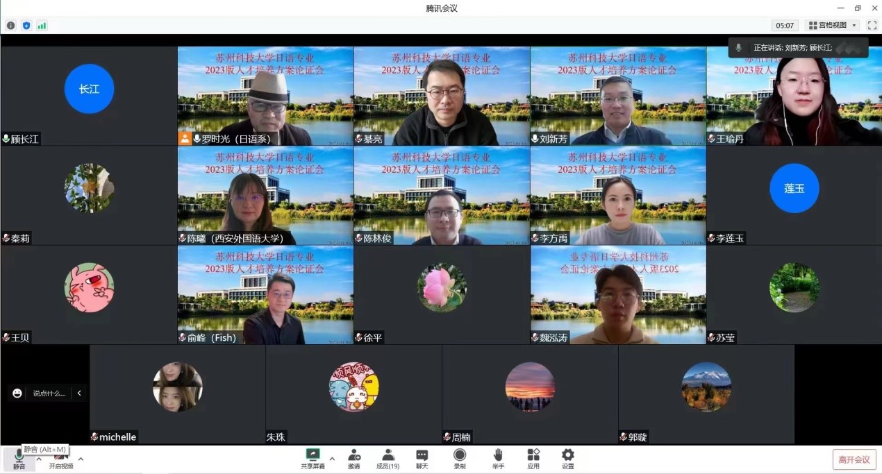 2023年1月6日,外国语学院通过线上方式,召开了英语、英语(师范)、日语专业2023版人才培养方案论证会。会议邀请了苏州大学外国语学院副院长孟祥春教授、广东外语外贸大学国际商务英语学院院长胡春雨教授、河南大学乐鱼网页版副院长付江涛教授、苏州市彩香教育集团总校长朱晓芳、苏州市教育科学研究院研究员葛余健、华为技术有限公司翻译与语言服务部张建农、南通市通州区教师发展中心主任沈晓彦(资深校友)、苏州工业园区景城学校教导处副主任李磊(资深校友)等英语专家,西安外国语大学陈曦教授、常州大学外国语学院副院长陈林俊教授、大阪希琳阁印刷(苏州)有限公司李方禹部长、苏州塔布尔斯咨询公司俞峰总经理、明治学院大学的周楠、南京新东方课外培训学校的郑丹等日语专家,苏州科技大学教务处王军副处长、外国语学院有关领导、专业负责人、骨干教师和学生代表共同参加了论证会。会议由刘新芳副院长主持。