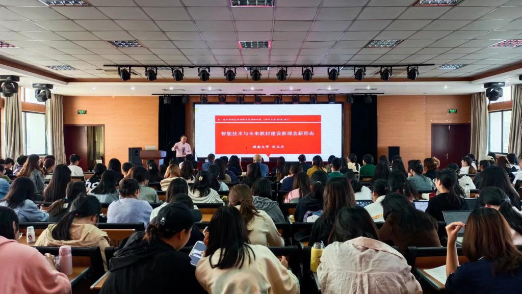 2023年10月15日下午,湖南大学刘正光教授莅临我院,在C2五楼报告厅作了“智能技术与未来教材建设新理念、新形态”的学术讲座。讲座由外国语学院副院长(主持工作)綦亮主持,外国语学院教师和学生参加。