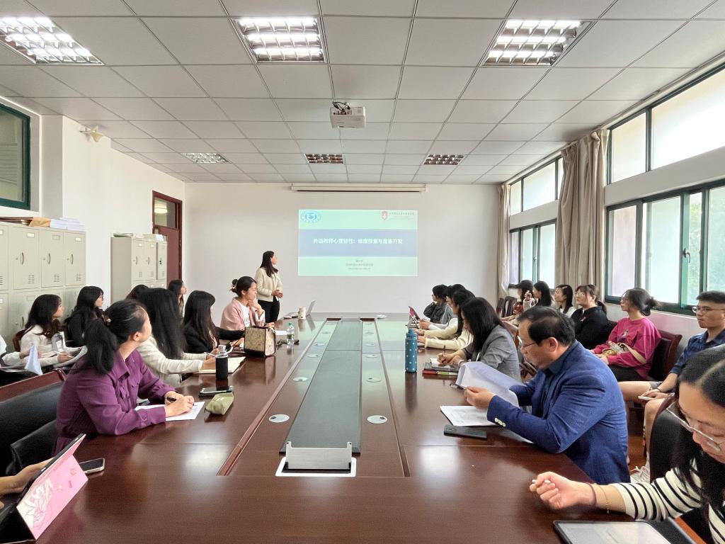 2023年10月11日下午,外国语学院语言教育研究所召开了系列学术讲座第一讲。本次讲座主讲人是外国语学院褚文秀博士,讲座题目为“外语教师心理韧性:维度探索与量表开发”。讲座由外国语学院英语学科教育专业硕士点负责人范丽娟教授主持,23级学科教学(英语)硕士生、语言教育研究所老师和系部老师纷纷参加。