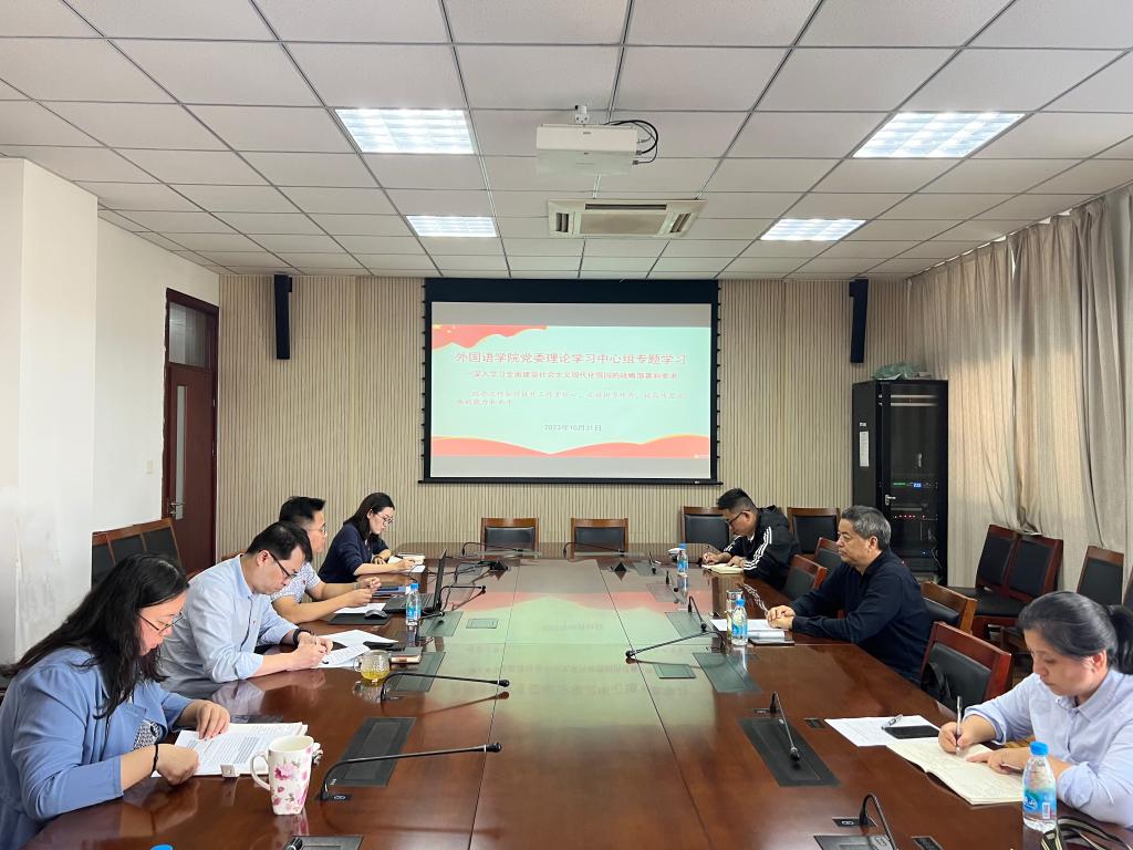 10月31日下午,外国语学院党委理论学习中心组开展《深入学习全面建设社会主义现代化强国的战略部署和要求》的专题学习,结合学习内容开展“如何进一步提升工作责任心、主动担当作为、提高攻坚克难的能力和水平”专题讨论。校党委常委、纪委书记张德高到会巡学旁听,会议由学院党委书记姚之彦主持,学院党委理论学习中心组成员参加学习。