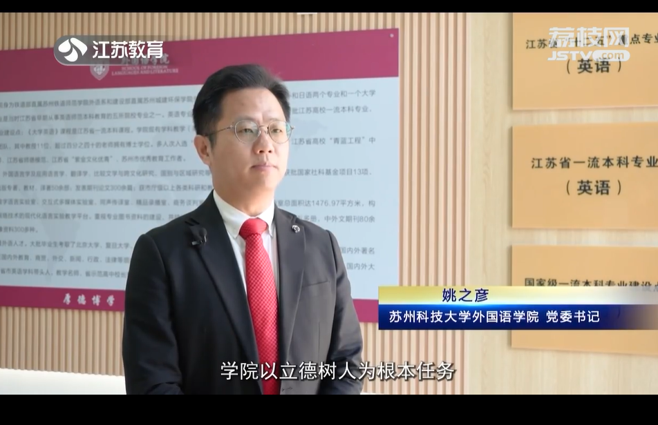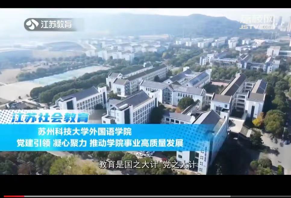 12月14日,江苏教育电视台、荔枝网的江苏社会教育《教育周刊》栏目(由江苏省教育厅主办),专题报道苏州科技大学外国语学院党建工作成效。节目从学院党建荣誉、党建领航助推学院人才培养、专业与学科建设、高质量成果产出、文化创新等领域报道了学院党建工作的主要做法和取得成绩,重点突出高校立德树人根本任务和贯彻落实党的教育方针基本要求。