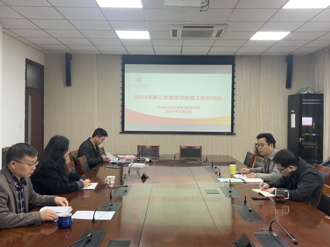 为进一步提升意识形态工作水平,牢牢把握意识形式工作主动权,2024年4月8日,外国语学院召开2024年度第二季度意识形态工作专题研判会,学院党委书记姚之彦主持,领导班子成员参加。