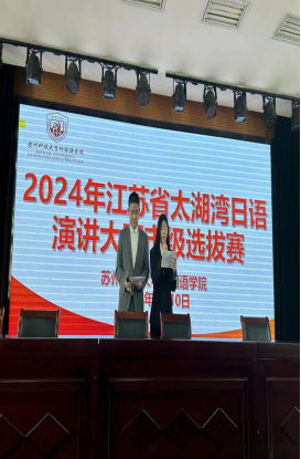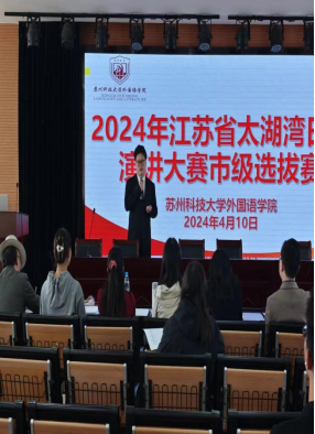 4月10日,在学院党政领导班子的大力支持下,2024年江苏省太湖湾日语演讲大赛市级选拔赛在我院五楼报告厅顺利举行。外国语学院日语系30余名同学及10余名教师参加了选拔赛活动。