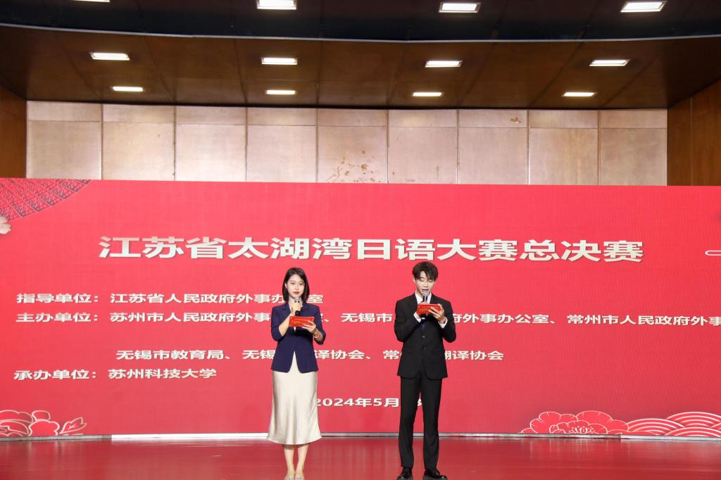 5月18日,2024年江苏省太湖湾日语大赛总决赛于苏州科技大学音乐厅隆重举行。大赛由江苏省人民政府外事办公室指导,苏锡常三地外办和译协等单位主办。太湖湾日语大赛是为深入贯彻长三角区域一体化发展国家战略举办的日语大赛系列活动,旨在密切无锡、常州、苏州、湖州环太湖四地日语教学往来,深化中日文化与科技交流,推进科技经济融合发展,激发创新活力。