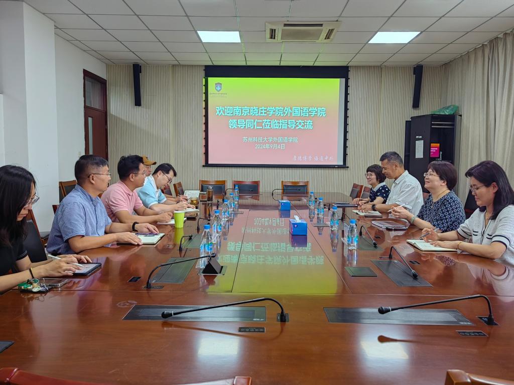 9月4日下午,南京晓庄学院外国语学院党委书记马传浩、院长王静萍、副院长汪璧辉等一行赴我院调研。外国语学院党委书记姚之彦、副院长(主持工作)綦亮等参加调研交流。
