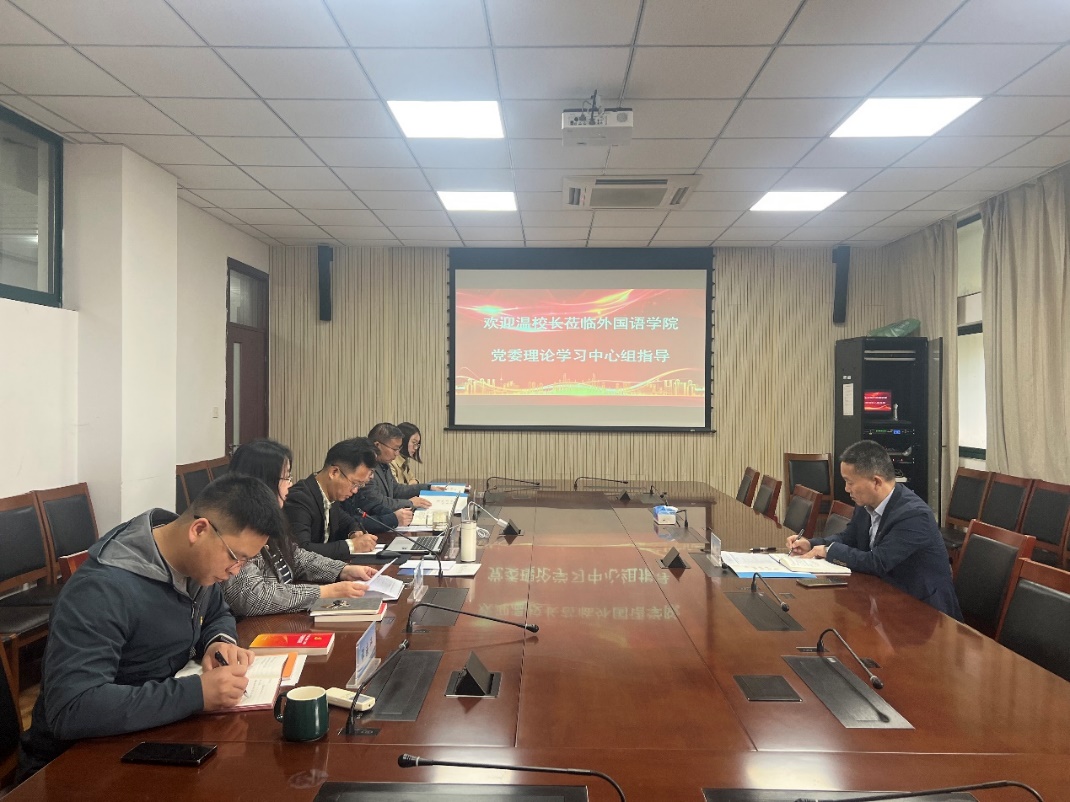 11月7日下午,外国语学院党委理论学习中心组召开专题学习会,围绕党的二十届三中全会精神深入开展学习研讨。校党委常委、副校长温波巡学旁听,会议由学院党委书记姚之彦主持,党委中心组成员参加学习,副院长刘新芳列席。