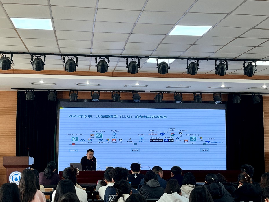 2025年4月2日下午,Nyonic.ai(瑞因凡)公司创始人兼CEO莅临我院,以题为“AI大模型如何赋能新质生产力”进行了一场契合当下热点话题的讲座。讲座由院长助理郭雯博士主持,外国语学院全体师生参加。