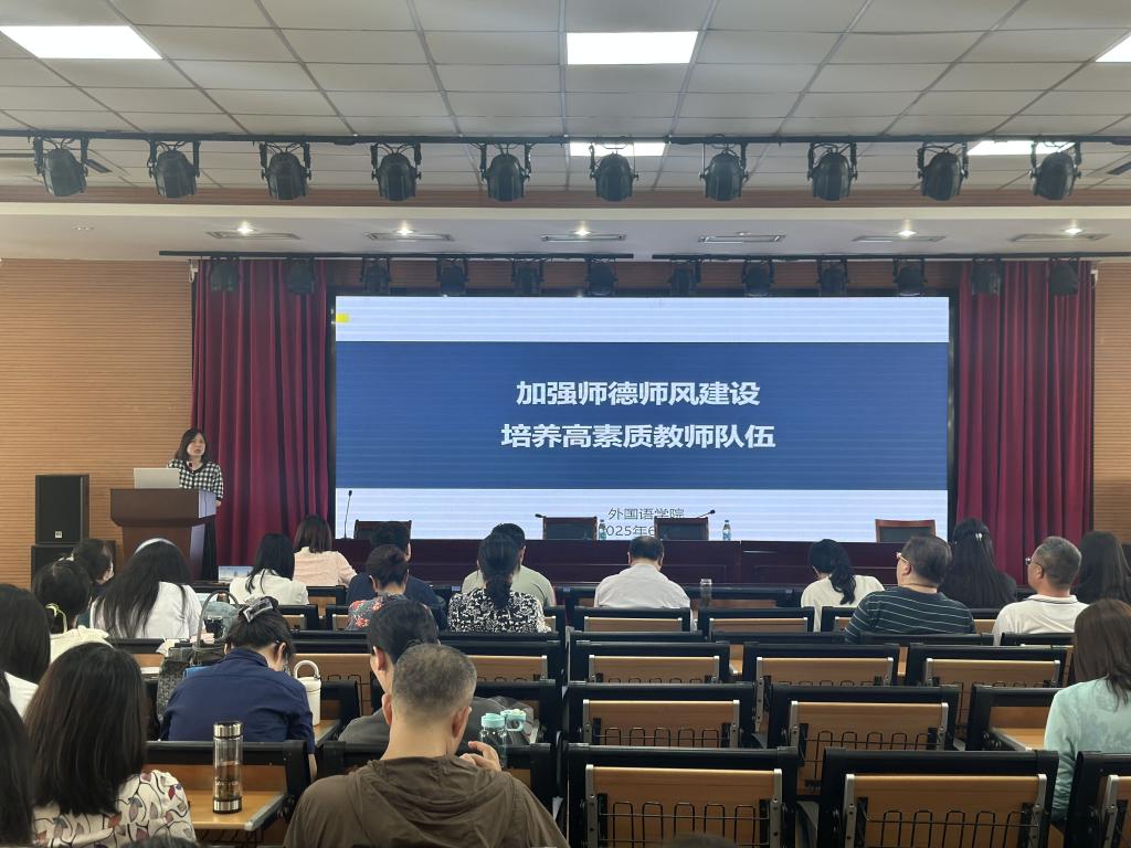 为进一步落实师德师风建设长效机制,深化师德师风建设,2025年6月4日,外国语学院在五楼报告厅召开师德师风教育大会,全院教职工参加会议,学院党委副书记(主持工作)李敏主持会议。