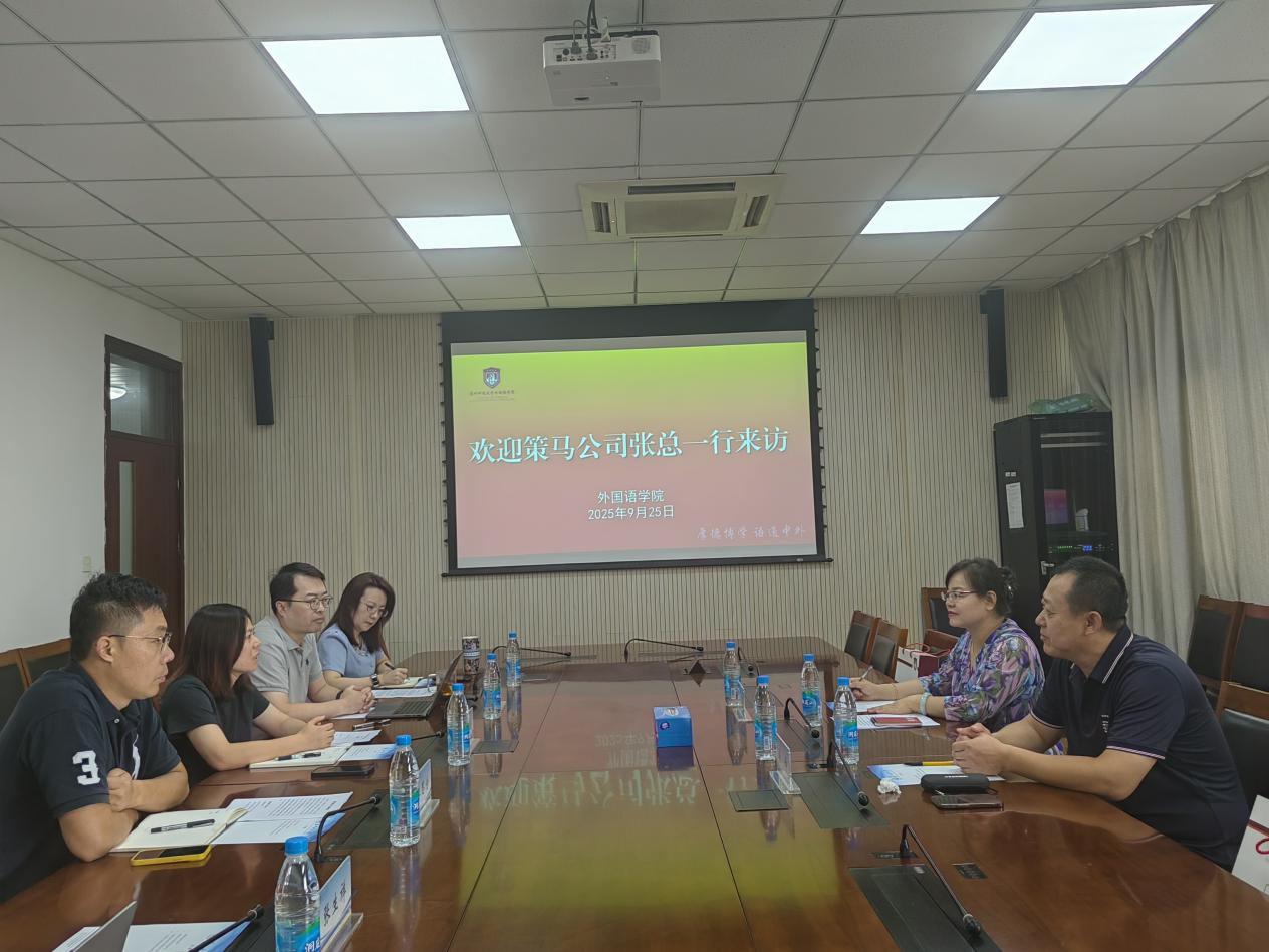 9月25日下午,策马集团一行来访外国语学院。集团副总裁张丽、上海策马翻译公司副总经理姜峰,外国语学院党政领导班子部分成员和教师代表参加会谈。