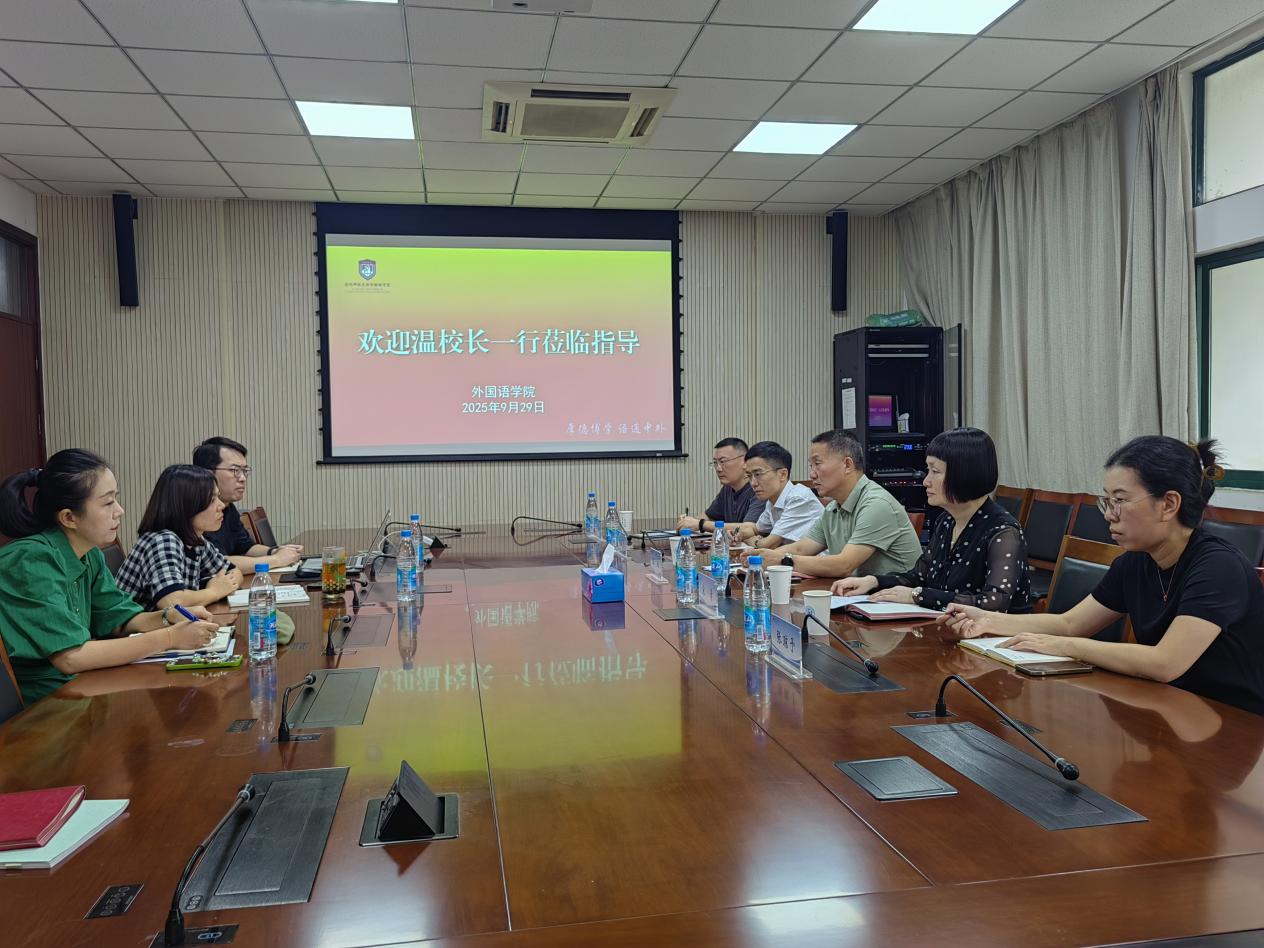 9月29日上午,党委常委、副校长温波,人文社科处处长宋青、副处长陈俊宇等一行,深入外国语学院调研科研工作,学院党政主要领导和分管科研副院长参加会议。