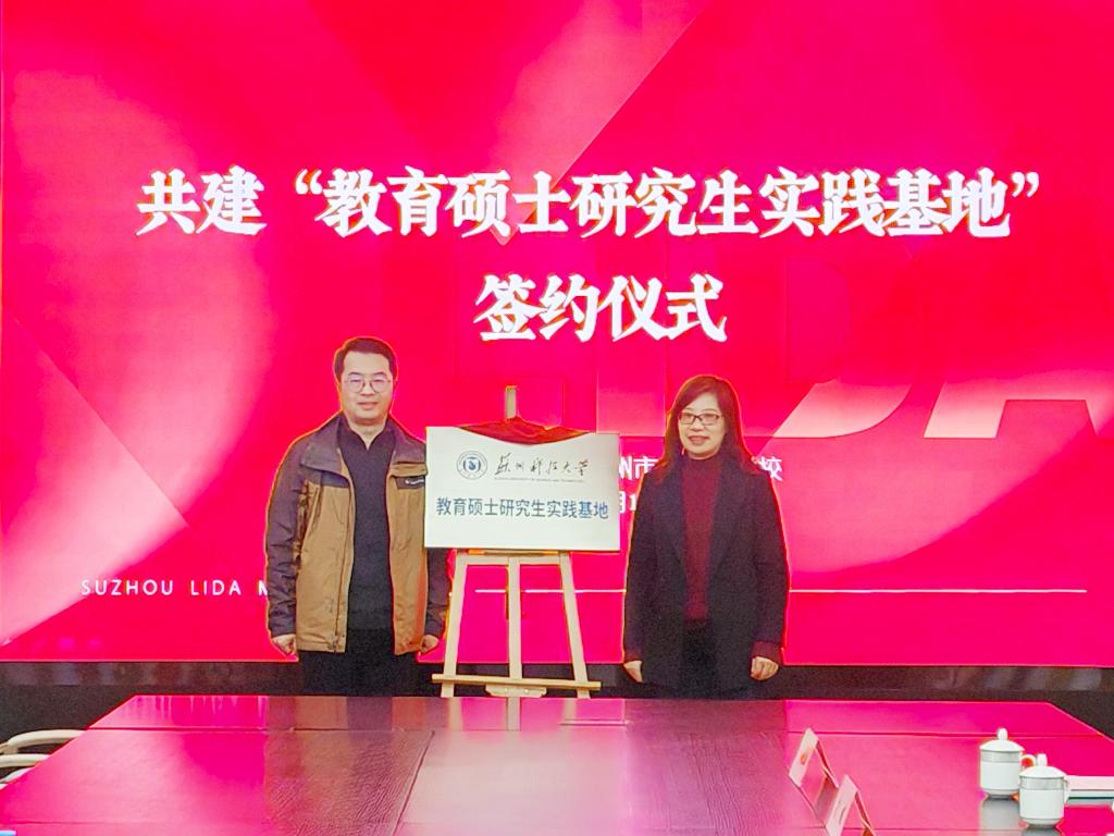 12月16日下午,外国语学院和苏州市立达中学校共建“教育硕士研究生实践基地”签约仪式在立达中学举行。綦亮副院长(主持工作),郭雯副院长,学科教学(英语)负责人张现荣,苏州市立达中学校教育集团党委书记、校长徐寅倩,副校长吴怡,教务处主任吴惠芳以及校外导师代表参加了本次活动。