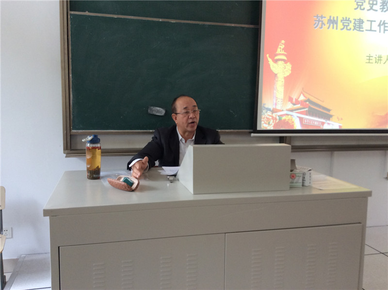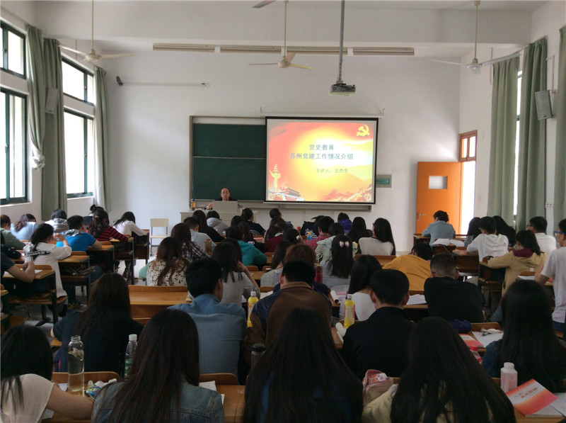 2015年5月6日下午一点半,外国语学院邀请了关工委王杰生老师为同学们上党课,党课的主要内容为党史教育以及苏州党建工作情况介绍,在座的同学都受益匪浅。 王老师曾多年在县委、地委宣传部从事党的干部理论教育工作,曾任新疆和田地委宣传部讲师团团长、新疆社会科学院特邀研究员,是一位有着丰富经验的共产党员,现任苏州市老专家协会、老科协副会长,科普讲师团团长,是苏州市委老干部局、老干部宣讲团成员。此次授课,王老师追溯历史,放眼未来,介绍了我国从国民革命时期、十年内战时期到抗日战争时期、解放战争时期以及新中国成立至今的社会主义时期的历史演变,又介绍了苏州在历史上的演变和发展,赞扬了千千万万优秀革命烈士的不朽功绩,反思了我国在探索社会主义道路时期所走的弯路和从中取得的教训,鼓舞了大家将老一辈革命家的先进事迹和宝贵精神发扬光大,坚持正义的道路。为时一个半小时的授课很快结束,同学们从王老师的讲课中获得了许多知识,也得到了许多的感悟。 王老师的讲课带领大家走进了我国历史的长河,引导了青年学生树立对我国历史的正确认识和建立正确的价值观,鼓舞了大家坚持有信念、有梦想、有奋斗的人生,坚持为人民服务,书写自己无愧于社会的精彩篇章。(图/文 李明钊)