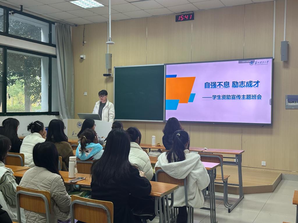 为进一步落实国家资助政策,深化资助育人成效,帮助学生树立正确的消费观与价值观,11月20日,苏州科技大学外国语学院组织开展资助育人主题班会。学院辅导员夏云康老师走进班级,与同学们面对面交流,将政策解读与成长引导融入其中,为青春护航。