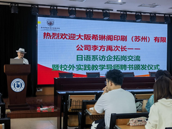 日语系主任罗时光首先致欢迎词,之后学工办主任陈碧榭为大阪希琳阁(苏州)有限公司总经理藤谷尚词和管理部次长李方禹颁发了校外实践教学导师聘书。最后请李方禹次长为日语系师生作了乐鱼网页版日资企业介绍及职业生涯规划的精彩讲座和经验分享。李方禹次长以日本OSP集团及大阪希琳阁(苏州)有限公司为例,给师生们详细介绍了日本大型跨国公司在中国和全球的发展状况及其较为成熟的企业文化与管理机制,指出在这样的全球大型企业工作具有较好、较稳定的未来成长和进升的通道,为日语专业师生展示了本专业及同学未来在日本大型企业就业的广泛市场前景,鼓舞了日语专业同学对未来在企业就业的信心;并就如何应聘日本全球大型跨国公司及未来职业生涯规划进行了宝贵的经验分享,极大地开拓了师生们的眼界和思路,为本院日语专业教学及2023人才培养方案的进一步修订提供了有益的市场经验和思路参考,访企拓岗交流活动取得圆满成功。