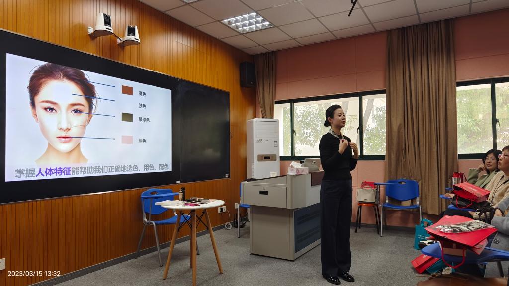 活动现场,女教职工们深入学习了原外交部副部长傅莹的著作《大使衣橱:外交礼仪之旅》,并展开了热烈的学习交流,分享了学习体会,老师们一致认为了解必要的国际文化和礼仪,非常有利于外语教师更好的与外国友人交流,有利于培养更有国际视野的优秀学生,推动实现用外语讲好中国故事,传播好中国声音。活动还邀请美国认证协会高级礼仪培训师刘梅华女士,给现场女教职工们开展了《形象礼仪提升》讲座,从护肤、服饰、彩妆、形象和礼仪五个方面教大家如何进一步提高自己的个人形象。