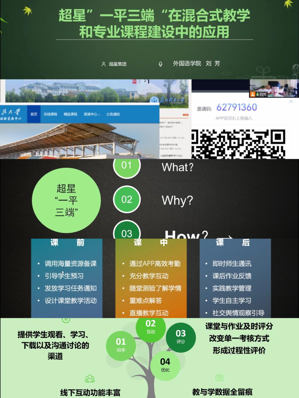 “超星一平三端”利用了互联网+教育的模式,不仅实现教育双向互动、实时交互模式,还提供了个性化的教育和服务,为老师们以后更好地利用超星学习通教学提供了极大的便利。