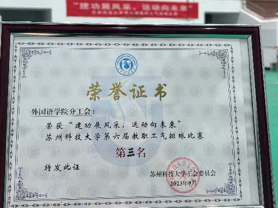 9月27日,苏州科技大学第六届教职工气排球比赛在教工之家圆满落幕。外国语学院教职工气排球队在比赛中奋勇拼搏,最终收获第三名的优异成绩!