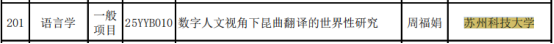 近日,江苏省哲学社会科学规划办公室公布了2025年江苏省社科基金年度项目立项名单,我院周福娟副教授成功获批一般项目,顾晶姝博士获批青年项目。